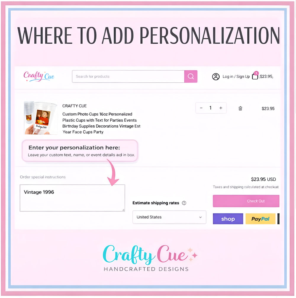 ● Add your personaLization in the ORDER SPECIAL INSTRUCTIONS box at checkout